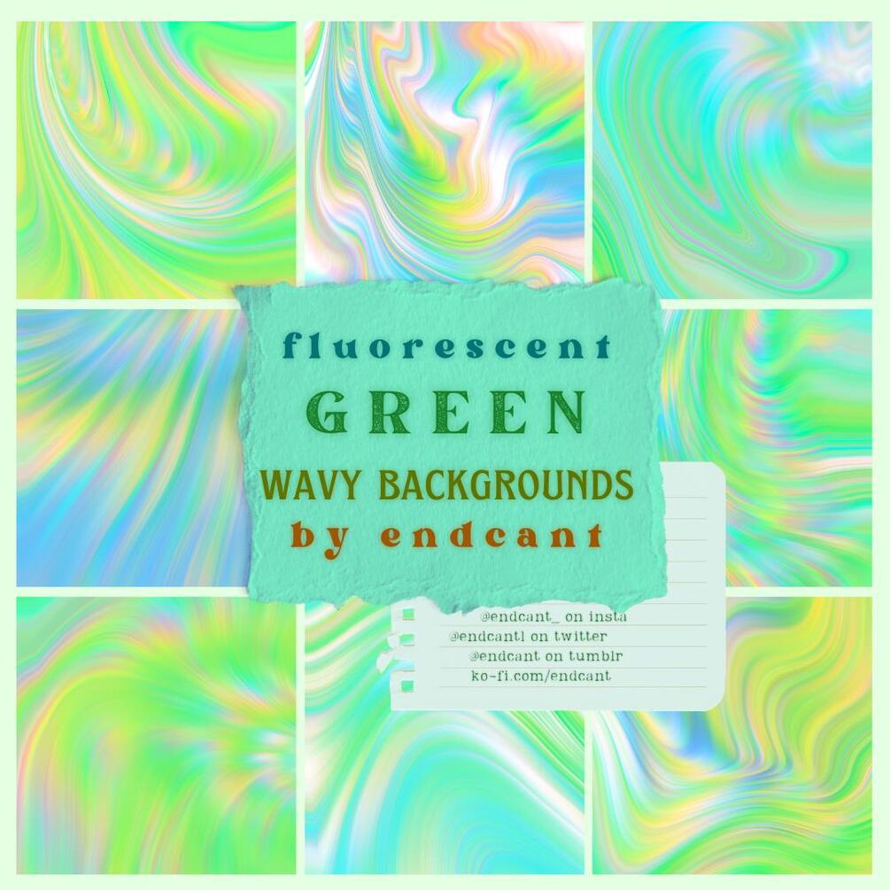 This set of 20 wavy .PNG backgrounds will give your project a colorful and fun vibe. These smooth and prismatic textures are neon green laced with colorful rainbow details.